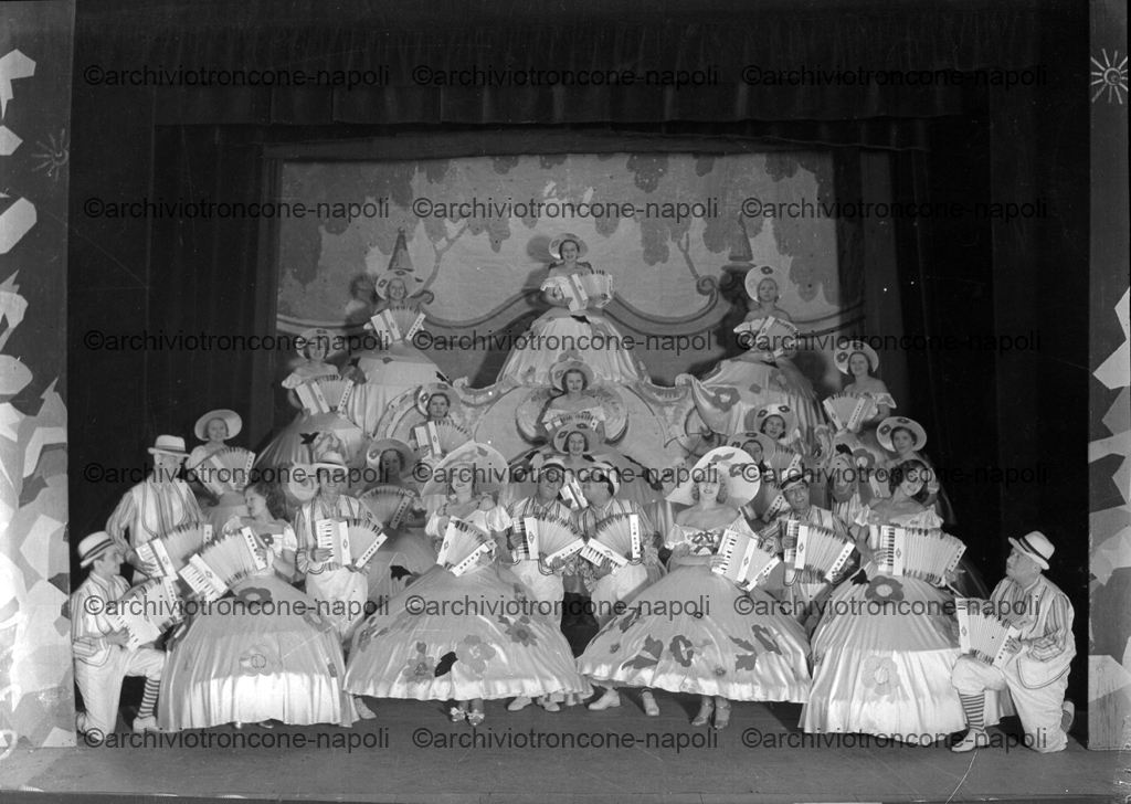 Nella fotografia possiamo vedere un gruppo misto di uomini e donne, tutti con una fisarmonica tra le mani. I costumi appaiono sfarzosi, in particolare per le donne. Tutti i personaggi presenti in scena indossano un cappello.